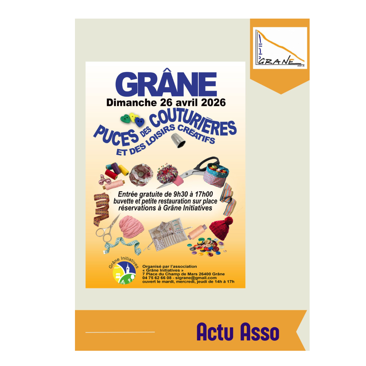 Pour la 7ᵉ année consécutive, Grâne Initiatives SI vous donne rendez-vous pour les incontournables Puces des couturières et des loisirs créatifs 📍